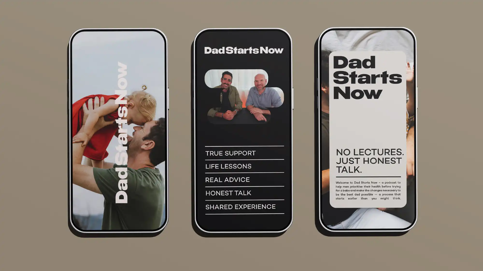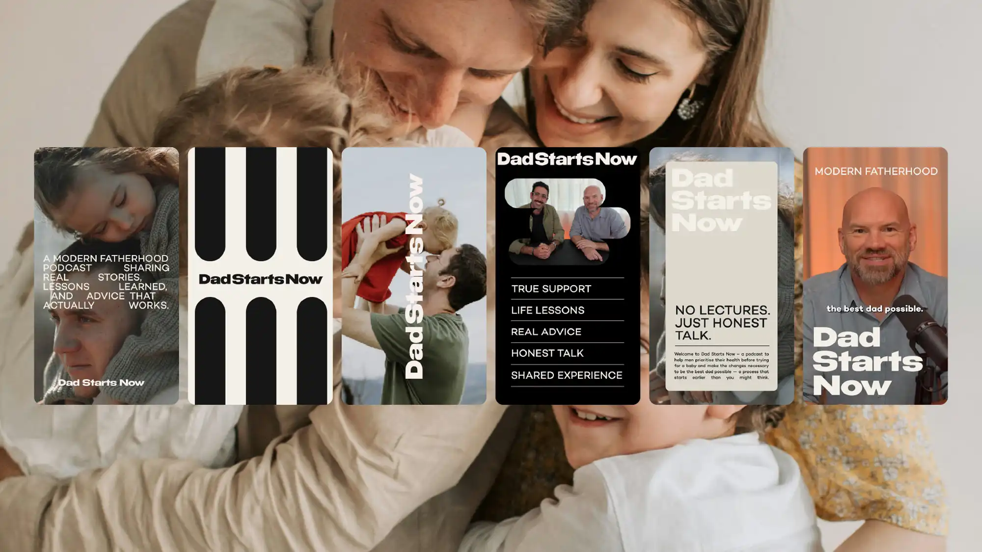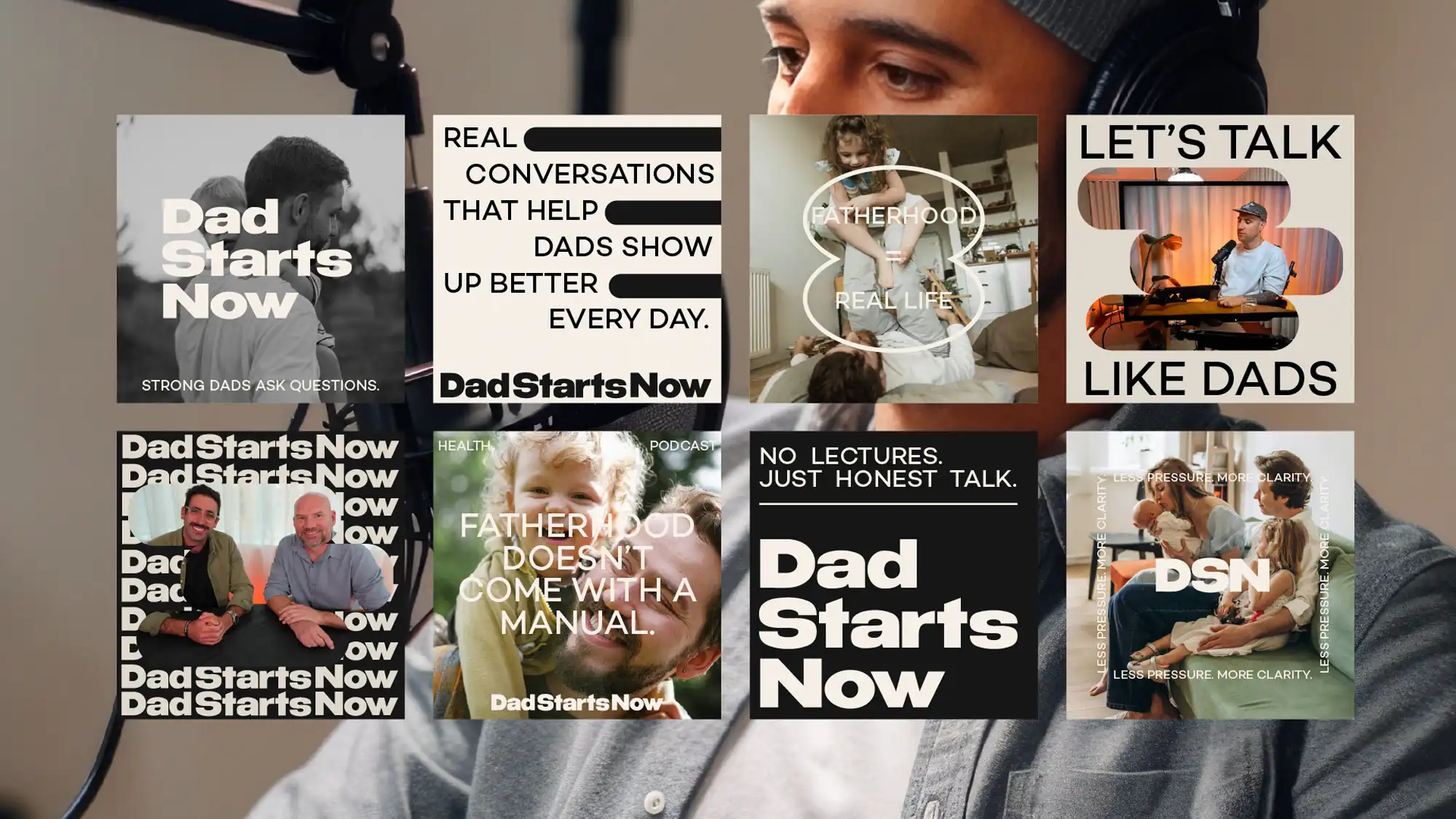 We developed a brand universe that could hold both authority and vulnerability — structured enough to support expert content, but human enough to reflect real experience. A system designed to elevate the podcast, strengthen its voice, and position Dad Starts Now as a trusted starting point for men navigating fatherhood as it unfolds.