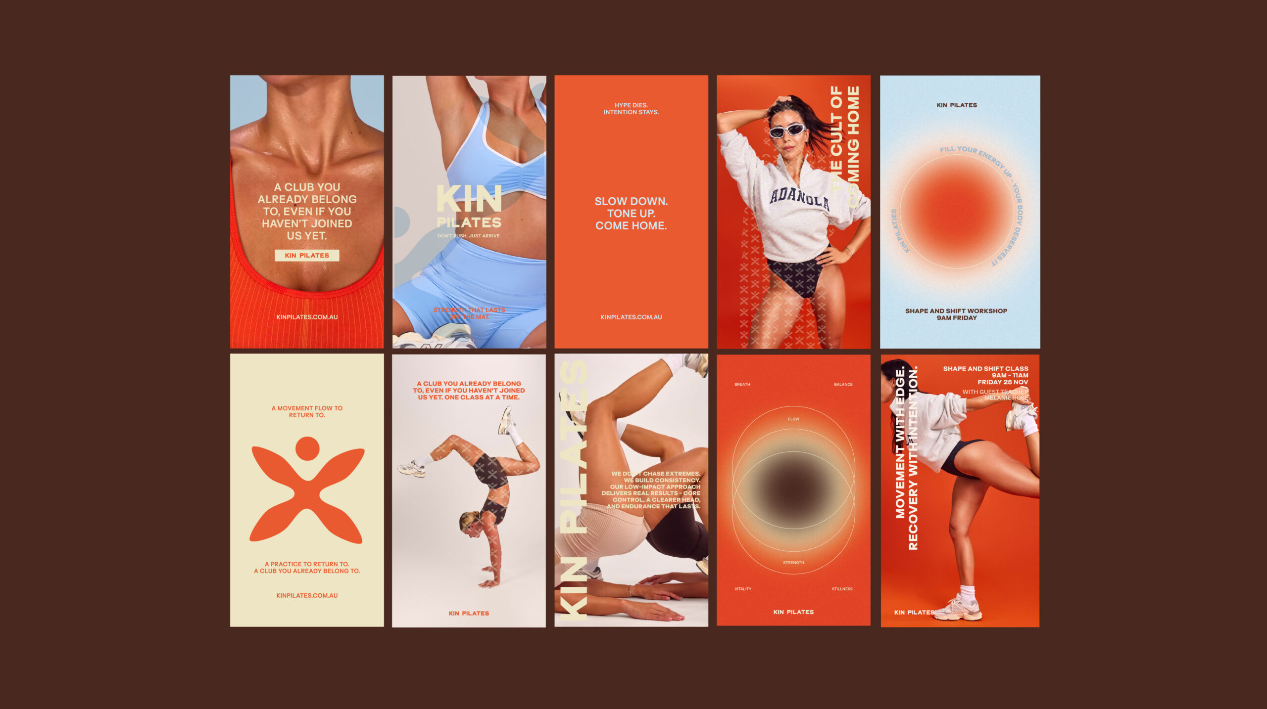 KIN Pilates entered a fast growing wellness market dominated by performance focused studios and outdated definitions of strength. They needed a brand that reflected a more holistic, inclusive approach to movement and positioned wellness as essential, not optional.
