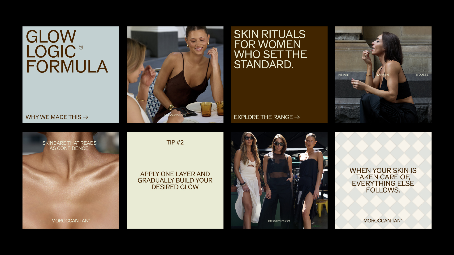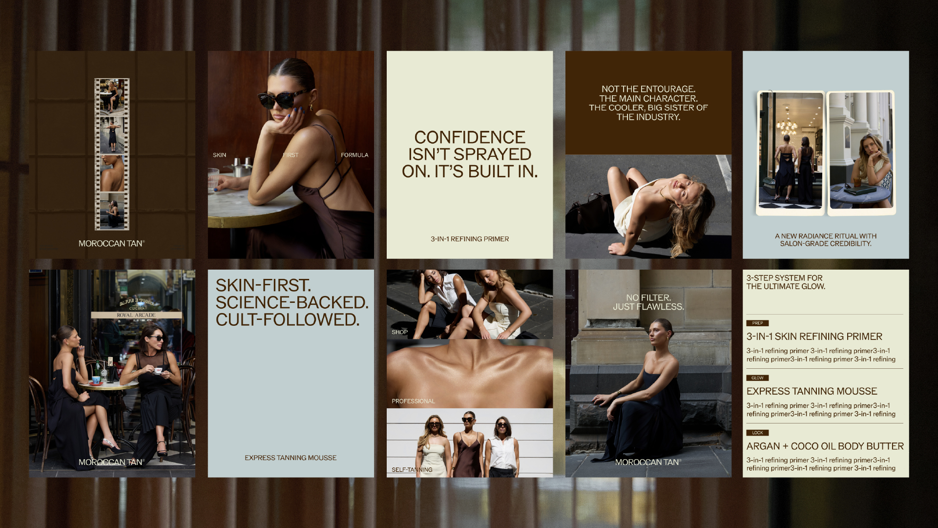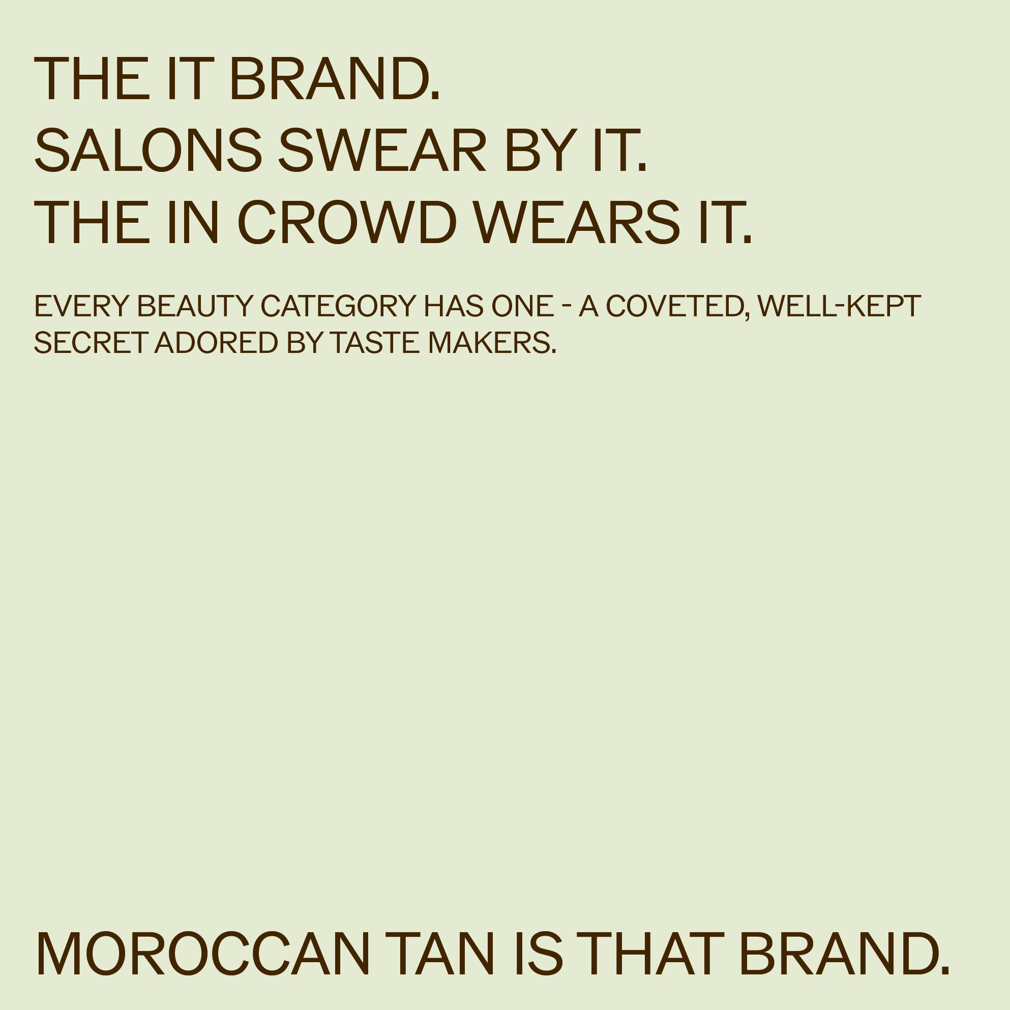 MoroccanTan came to us as a brand with cult salon heritage but an identity trapped in an industry that hadn’t evolved with it. In a category still clinging to glitter, bikini shoots and outdated packaging, MoroccanTan had the credibility, science and global trust to lead – but not the brand world to reflect it.